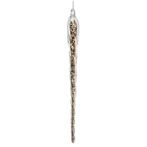 Bring a touch of elegance to your holiday decor with our Glass Lined Icicle Clear Copper Sequin Ornament. This 10" ornament features delicate glass lining that catches and reflects light, creating a shimmering effect. The addition of copper sequins adds a touch of sparkle and sophistication. Elevate your tree this season with this stunning ornament!