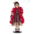The Holiday Magic Mae Doll, standing 33 inches tall, is a whimsical handcrafted figure dressed in a tiered red tulle coat adorned with Christmas ornaments and hidden twinkle lights. Her plaid dress features jeweled poinsettias and stunning gold and green jeweled trim. Mae carries an adorable poinsettia-embellished handbag, adding charm to her festive look. Batteries are included to power the enchanting lights in her coat, making her a captivating addition to your holiday décor.