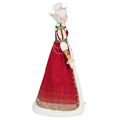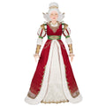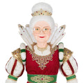 Standing gracefully at 64 inches, our life size Queen Noelle Claus is a handcrafted vision of royal holiday elegance. Dressed in a faux fur edged gown embellished with lavish gold embroidery, pearls, and dazzling gemstones, she brings regal splendor to any luxurious holiday décor collection.