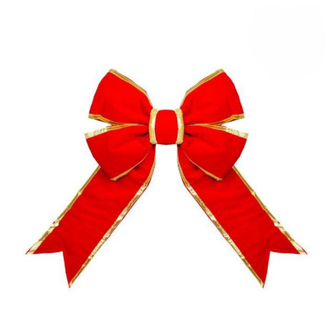 Transform your holiday décor with our striking 24" Indoor Structure Bow. Made from vibrant red velvet and highlighted with a luxurious gold lame trim, this bow brings a festive and elegant touch to any setting. Its robust design ensures it retains its shape, making it ideal for wreaths, garlands, and other indoor decorations. Perfect for adding a touch of glamour and sophistication to your holiday celebrations.