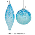 Blue Bead and Sequin Ball and Finial Ornaments (2 Styles – Sold individually)