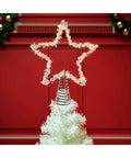 Add a beautiful twinkling touch to the lighting of your Christmas tree with Kurt Adler's warm white silver tinsel star treetop.