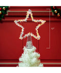 12" 55-Light Warm White LED Silver Tinsel Star Treetop