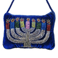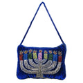 Beaded Menorah on Blue Ash Velvet Doorknocker, 4x6"