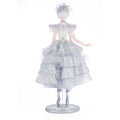 The Crystalline Winter Ballerina Figurine, standing 29 inches tall, is a beautifully handcrafted delicate doll that captures winter’s magic. Its stunning iridescent tulle is layered with sparkling organza, accented by hand-beaded appliques and the finest crystal and sequin-embellished trim. A handmade rhinestone crown adds regal elegance. This ballerina comes with a snowflake sparkle-covered stand but can also be displayed sitting, making it a versatile and enchanting addition to your collection or holiday décor.
