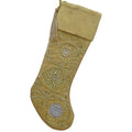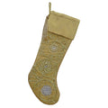 Bring a luxurious glow to your holiday décor with this gold stocking featuring intricate silver and gold embroidery. Its soft velvet fabric provides cozy comfort, while the generous size offers ample space for festive treats and gifts. This elegant stocking adds a shimmering touch of seasonal charm to your mantel or Christmas tree.