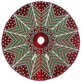Elevate your holiday décor with this exquisite 60" tree skirt, handcrafted and embroidered by master artisans in Agra, India. Featuring a stunning beaded star pattern accented with crystals in festive red, silver, and green, it brings timeless elegance and a warm, luxurious touch beneath your Christmas tree. Make your celebrations unforgettable with this unique, artisanal piece that blends tradition and beauty perfectly.