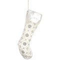 Celebrate the season with this beautifully embroidered stocking featuring delicate snowflakes and stars. Crafted from soft velvet, it offers a cozy feel and ample space for holiday treats and surprises. Add timeless festive charm to your mantel or Christmas tree with this elegant and spacious stocking.