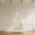 This 6.5 ft White Tree spans 50 inches in width and features 4,606 tips. It comes pre-lit with 500 M4 white LEDs, creating a brilliant and festive display that will brighten your holiday décor.