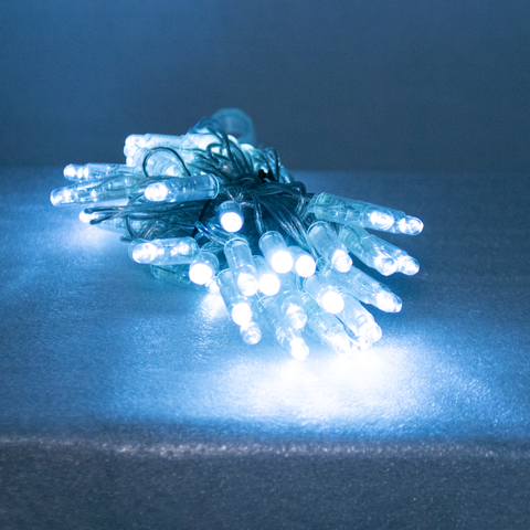 Dome Bulb, Dual Color Warm White/White European Style LED Light String, 50 Bulbs, 4 Inch Spacing, Approximate Length - 16 Feet, Coaxial Connect, 24V, Exterior Rated, Wire Color - Clear
