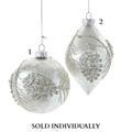 Glass Glittered Ice White Ball and Tear Drop Ornament (2 Styles – Sold individually)