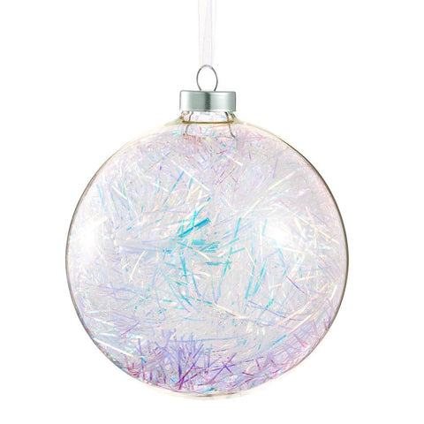 Glass Ball Ornament With Tinsels, 4.75" (Clear & Iridescent)