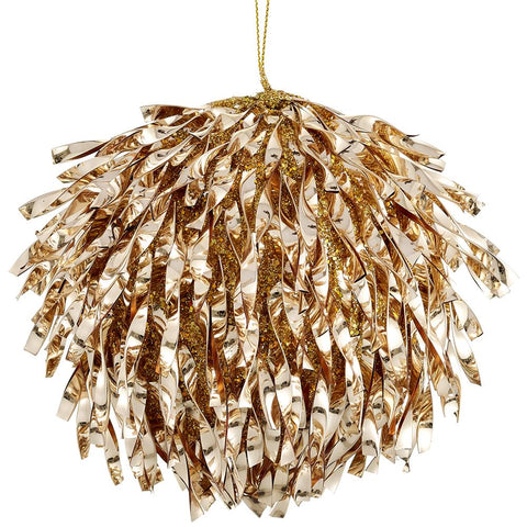 Glittered Tinsel Ball Ornament, 5" (Gold)