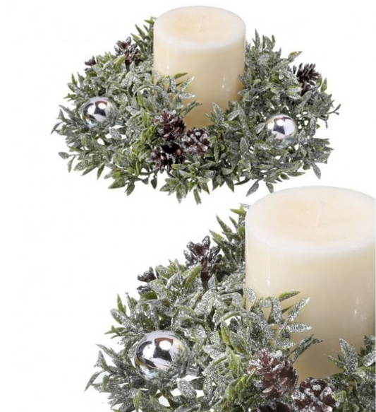 Flocked Oval Cedar and Mini Pinecone Christmas Wreath, 29"