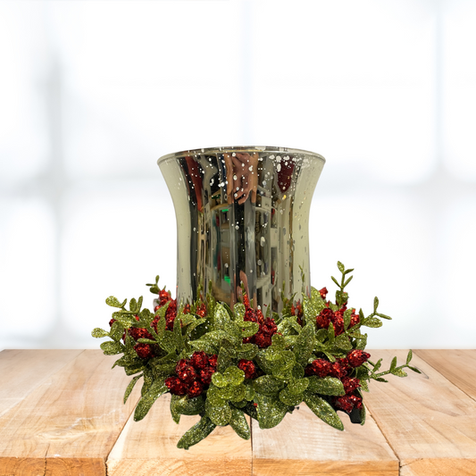 24″ Frosted Pine Wreath w/ Pinecone, Holly, Berries & Red Ball