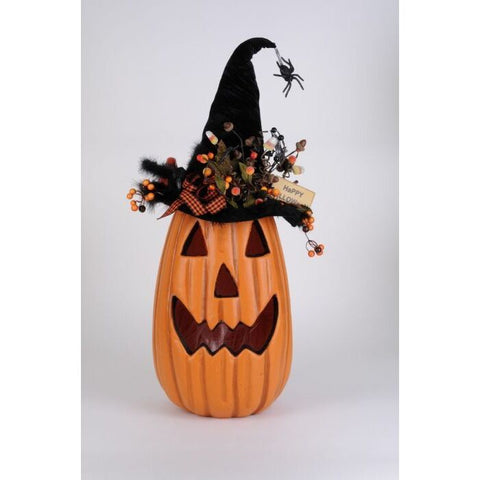 Resin Trick or Treat Pumpkin Man on Pumpkin, 9"
