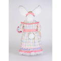 Introduce enchanting springtime elegance with this 29-inch lighted bunny figurine. Adorned in luxurious pastels—lavender, blush pink, and soft blue—she captivates with delicate lace, pearl beads, and shimmering accents. Her ruffled collar, floral headpiece, and jeweled details evoke heirloom charm with a whimsical touch. The integrated lighting adds a magical glow to your seasonal display, making her a standout centerpiece that transforms any room into a springtime sanctuary.