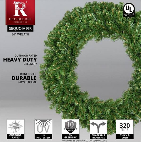 Indoor/Outdoor Artificial Green Sequoia Fir Wreath, Unlit, 36"