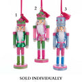 These 6-inch multicolor preppy nutcracker ornaments from Kurt Adler are a fun and festive addition to any holiday décor! Included in this assortment is a pink and green nutcracker ornament, a green and pink nutcracker ornament and a blue and pink nutcracker ornament. Each nutcracker is glittered with a pink tassel and glittered base.