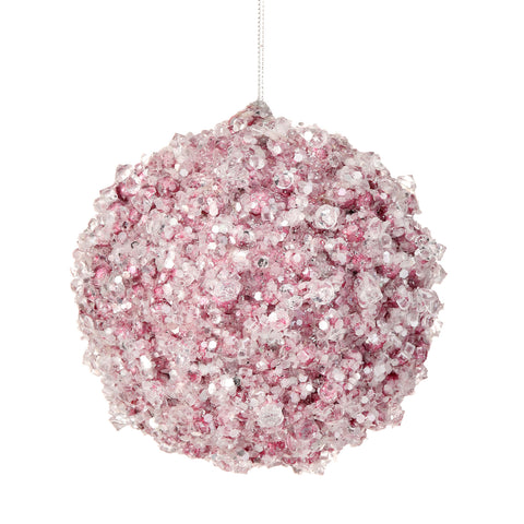 5" Iced w/Crystal Encrusted Ball Ornament (Soft Pink)