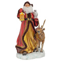 Celebrate the season with this striking red and gold Santa with reindeer figurine. Measuring 19" high, 16" wide, and 13.25" deep, it makes an ideal gift that brings festive cheer to any indoor space. Perfect for adding warmth and holiday spirit to your home, this beautifully detailed decoration is designed for indoor use only, ensuring it remains a treasured part of your seasonal celebrations.