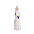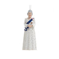 This Queen Elizabeth ornament from Kurt Adler is a fun addition to your holiday décor or Christmas tree. Paying homage to our closet ally The Queen is wearing a white gown, blue sash and a jeweled tiara.