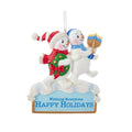 This Hanukkah and Christmas snowmen ornament from Kurt Adler is a unique and festive addition to your home or holiday décor. This ornament features a Christmas snowman holding a decorated wreath and a Hanukkah snowman holding a menorah "Wishing Everyone A Happy Holidays."