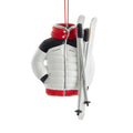 Kurt Adler's ski jacket ornament is a fun addition to your home or holiday décor. It features a red, white and black ski jacket with white skis and silver poles.