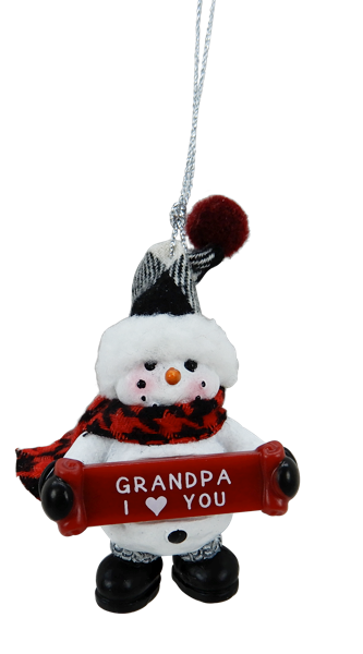 Decorate your tree with this charming Snowman Ornament! With a sweet message of "Grandpa I love you" and a size of 2.5", this ornament adds a touch of love and holiday cheer. A perfect gift for grandpa or a special reminder of the love you share with yours.