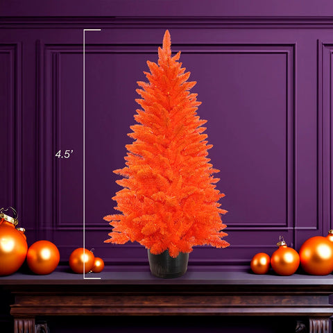Battery Operated Pre-Lit Halloween Orange Potted Tree With Orange LED Lights, 4.5'