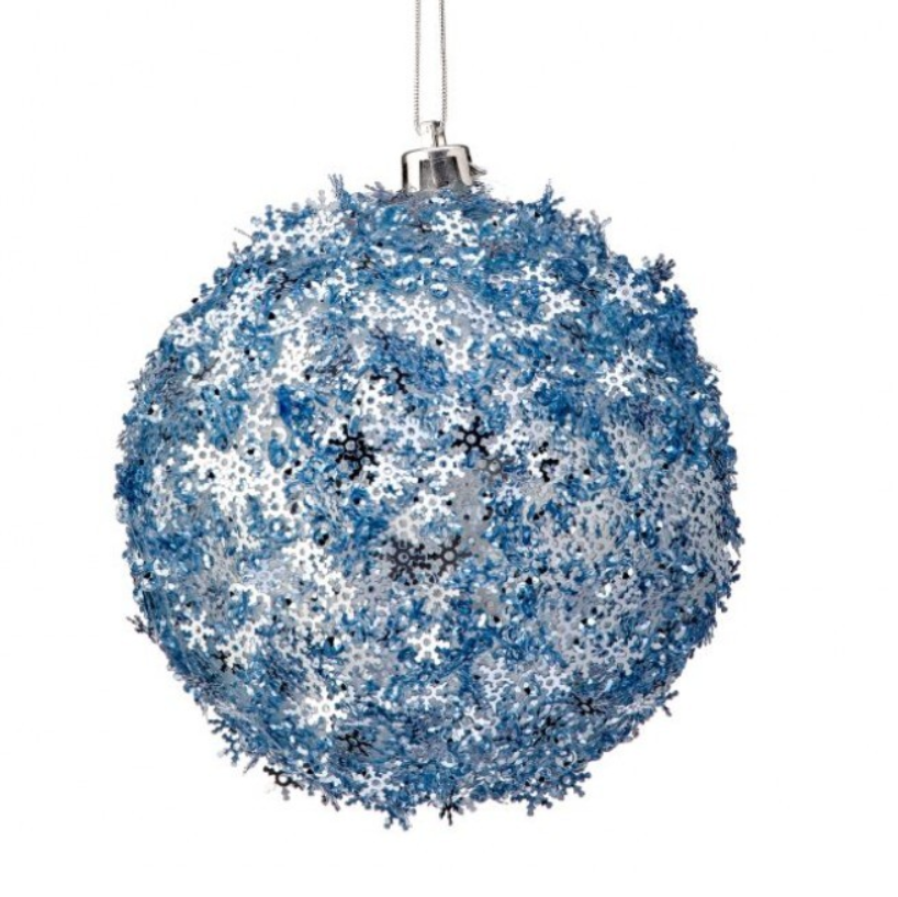 Metallic Snowflake Ball Ornament, 4" (Aqua)