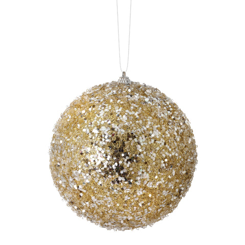 6" Glitter Sequin Iced Ball Ornament (Champagne)
