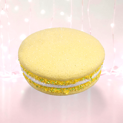Brighten up your space with our 7" Yellow Macaron Hanging Ornament! This adorable macaron ornament is perfect for adding a pop of color to your holiday decor or year-round. Hang it on your tree, in a window, or anywhere you want to add a touch of sweetness.
