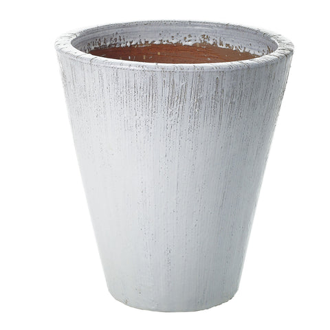 Ceramic Planter w/ Vertical Raised Lines, White, 16" x 18"