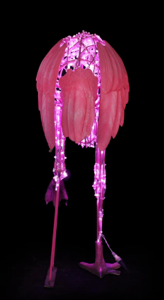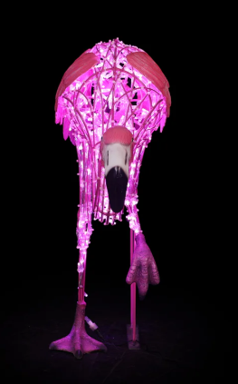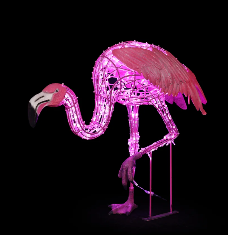 Large Pink Flamingo Standing On One Leg, LED Lit w/Fiberglass, 46"