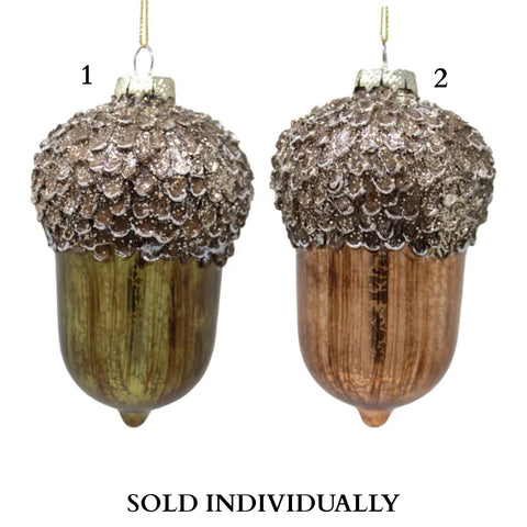 Glass Antique Gold & Green Acorn Ornaments (2 Styles – Sold individually)