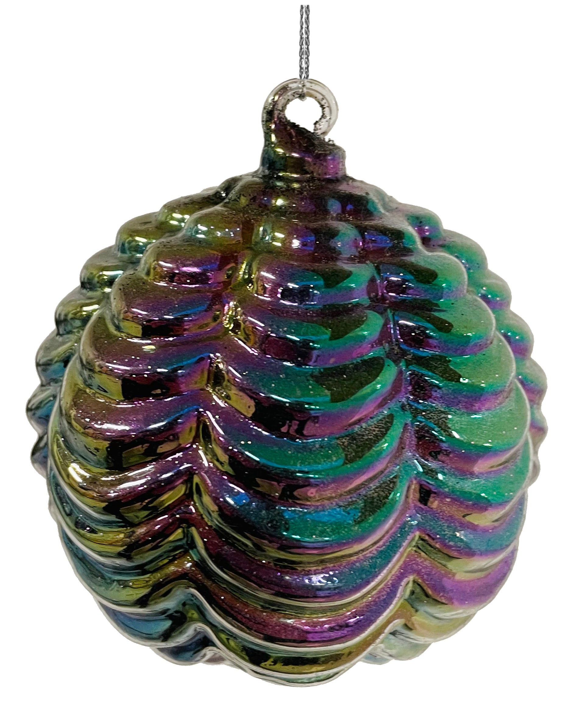 Delight in the beauty of this purple-lustred 10cm glass ball ornament. The intricate frill design sparkles and shines, creating a mesmerizing effect that's sure to make any room or tree more festive. Make the holiday season special with this unique and captivating ornament.