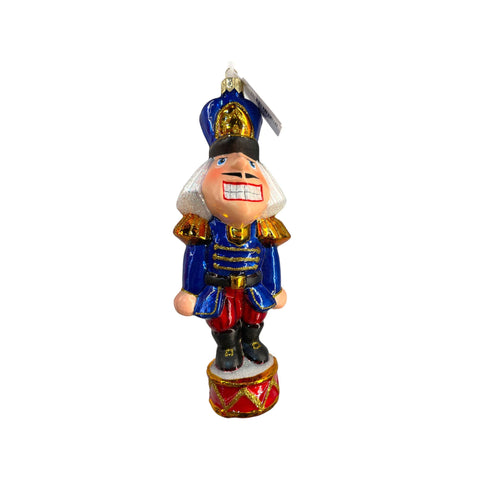 Add a touch of classic holiday charm with this Glass Blue Nutcracker Ornament. Its vibrant blue glass finish captures the festive spirit while reflecting light beautifully on your tree. Perfect for collectors or as a standout decoration, this ornament brings timeless elegance and a pop of color to your seasonal décor. Make your Christmas memorable with this striking nutcracker accent.