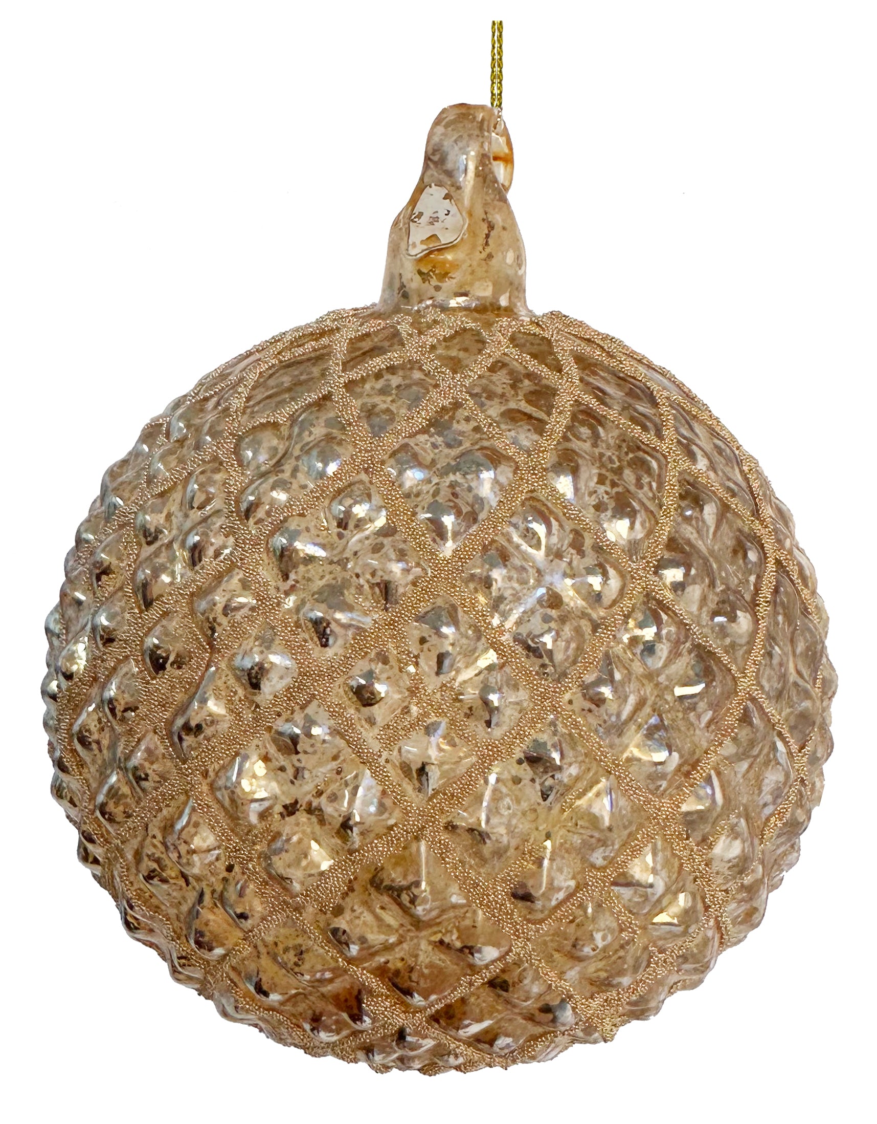 Glass Cone Ornament Ball Antique Gold Beaded, 5"