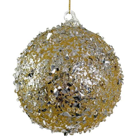 Glass Gold Ball - Silver Glitter and Beads, 4.7"