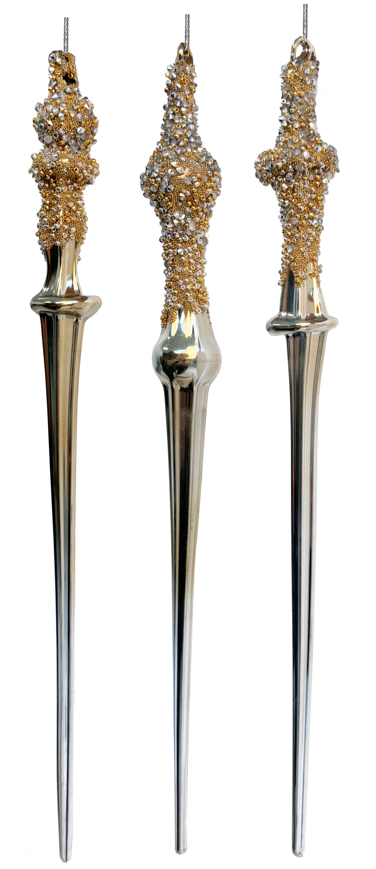 Glass Icicle Smoked Shiny Beaded Top Mix (sold individually)