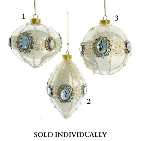 These Glass Pearl White Ball, Drop & Onion Ornaments from Kurt Adler bring a touch of timeless elegance and sophistication to your holiday decor. These exquisite ornaments feature three different shapes – ball, drop, and onion – in a pearl white finish with gemstone and glittered accents, creating a luxurious and classic addition to your Christmas tree or any festive display. Crafted with meticulous attention to detail, each ornament showcases a pristine and lustrous pearl white surface that imparts a sense of purity and elegance. These ornaments exude a timeless beauty that enhances the overall aesthetics of your holiday decorations. Whether you're a fan of classic holiday decor, a lover of elegant aesthetics, or simply someone who appreciates the beauty of pearl white ornaments, they are the perfect choice. They bring a touch of sophistication and purity to your celebrations, making them a cherished addition to your collection of ornaments and a source of admiration for family and friends. Elevate your holiday decor with the timeless elegance of our Glass Pearl White Ball, Drop & Onion Ornaments. Let them remind you of the beauty of simplicity and purity during the holiday season, and make them a special part of your holiday traditions.