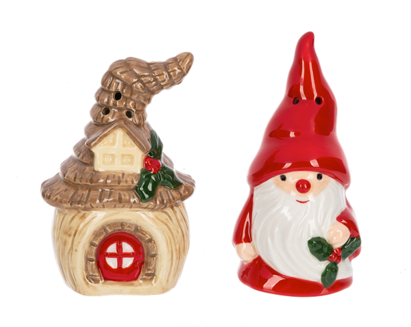 This adorable salt and pepper set features a whimsical gnome and his charming house, adding a touch of enchantment to your dining table this holiday season!