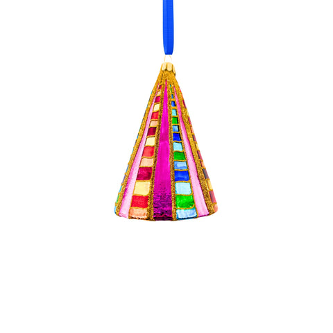 A carousel of color spinning under the stage lights, this ornament knows how to make an entrance. Decked in high-saturation stripes with a reflector base that glints like a jackpot, it’s part peppermint twist, part peacock strut.