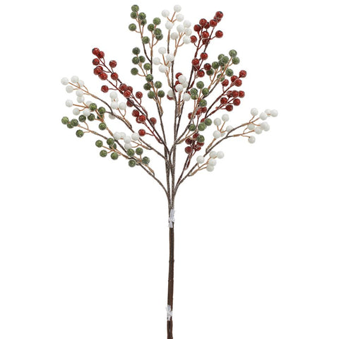 Instantly enhance your holiday displays with this enchanting 29" Iced Berry Bundle featuring three mixed stems. The frost-kissed berries, crafted from quality foam and plastic, create a magical winter effect that catches light beautifully. Perfect for adding colorful dimension to wreaths, garlands, or centerpieces with minimal effort.
