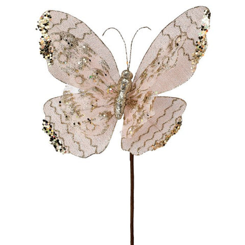 Sheer Organza/Sequin Butterfly Stem, 17" (Blush)