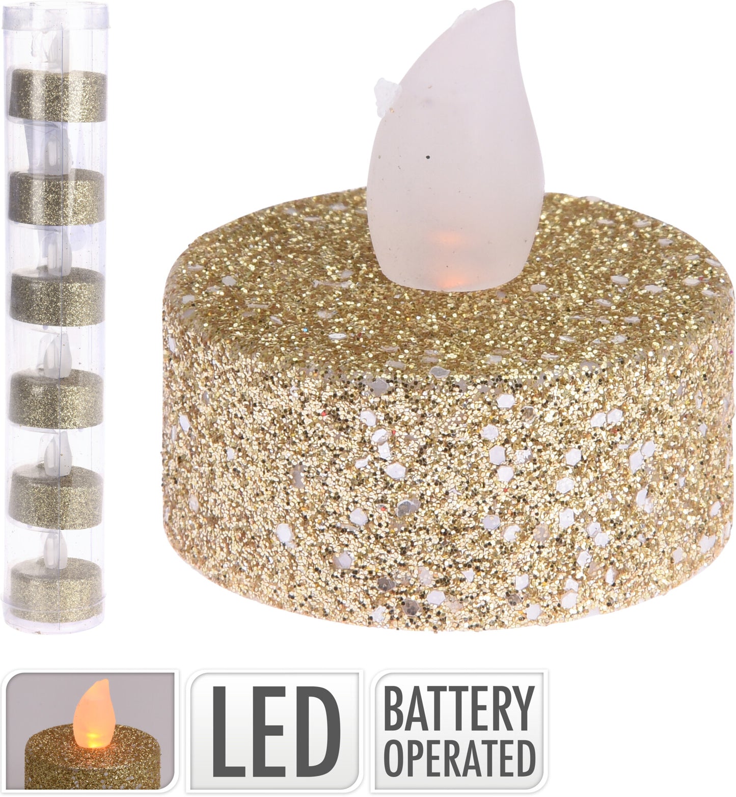 Tea Light LED Gold Glitter 6pc set