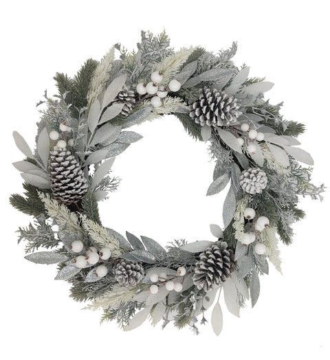 This 26" White Pine Essence Wreath features 6 pinecones, 6 berry picks, 24 hard needles, and 18 PE picks, creating a lush and festive decoration perfect for bringing natural holiday charm to your home.